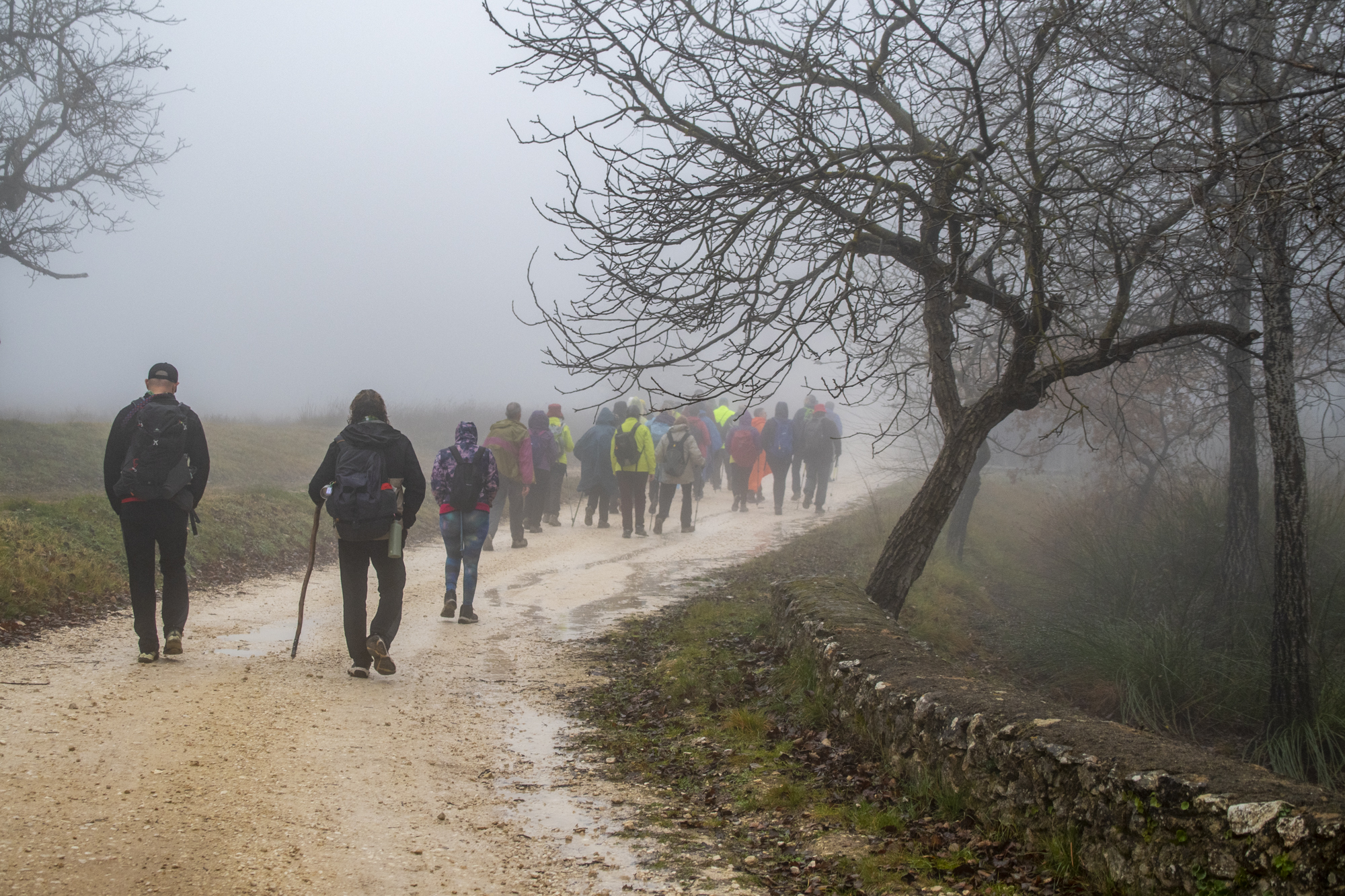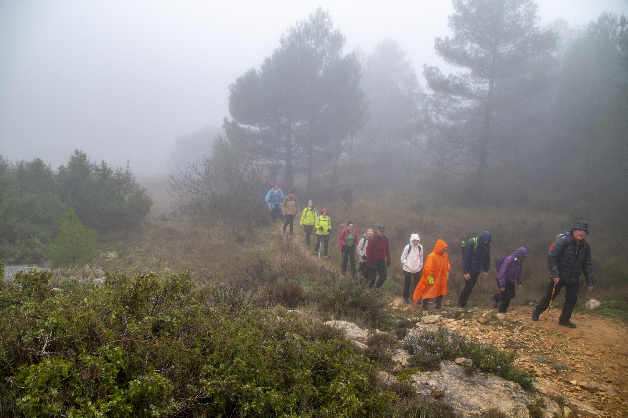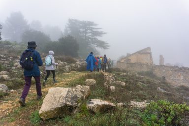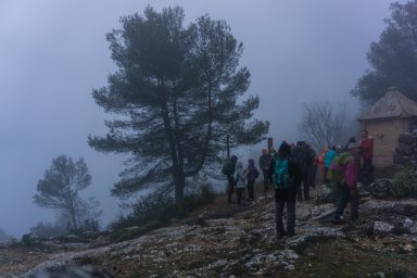 Sobre las siete y muy poquito partíamos en autobús hacia la localidad de Bocairent, era todavía de noche y conforme nos acercábamos a nuestro destino, la niebla cada vez se iba cerrando más y más.