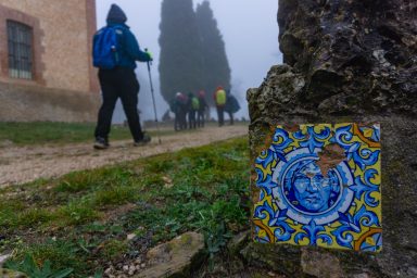 El inicio ha sido en constante ascenso, sobre un kilómetro y medio, hasta llegar a la ermita de San Jaume que se alza, rodeada por la preciosa Sierra de Mariola, como un rincón donde naturaleza e historia se encuentran. Construida en el siglo XVI, en su fachada de mampostería encontrarás un retablo de azulejos del santo, coronado por una espadaña con campana y cruz de hierro. Está dedicada al primer patrón de Bocairent, y es un rincón que invita a detenerse y disfrutar de la calma del entorno.