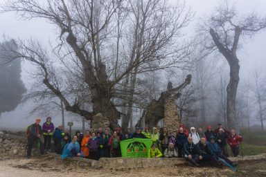 Seguidamente nos hemos dirigido hacia el Mas de Mingol y junto al enorme ciprés que hay en este paraje, hemos dado cuenta del almuerzo. Un momento de relax y descanso para reponer fuerzas y comentar las inclemencias que el tiempo nos ha deparado para este día, que aun así, ha sido fantástico para la práctica del senderismo, y sobre todo en un entorno privilegiado como es el Parque de la Sierra de Mariola.