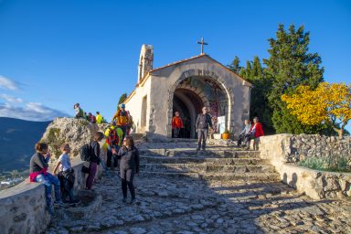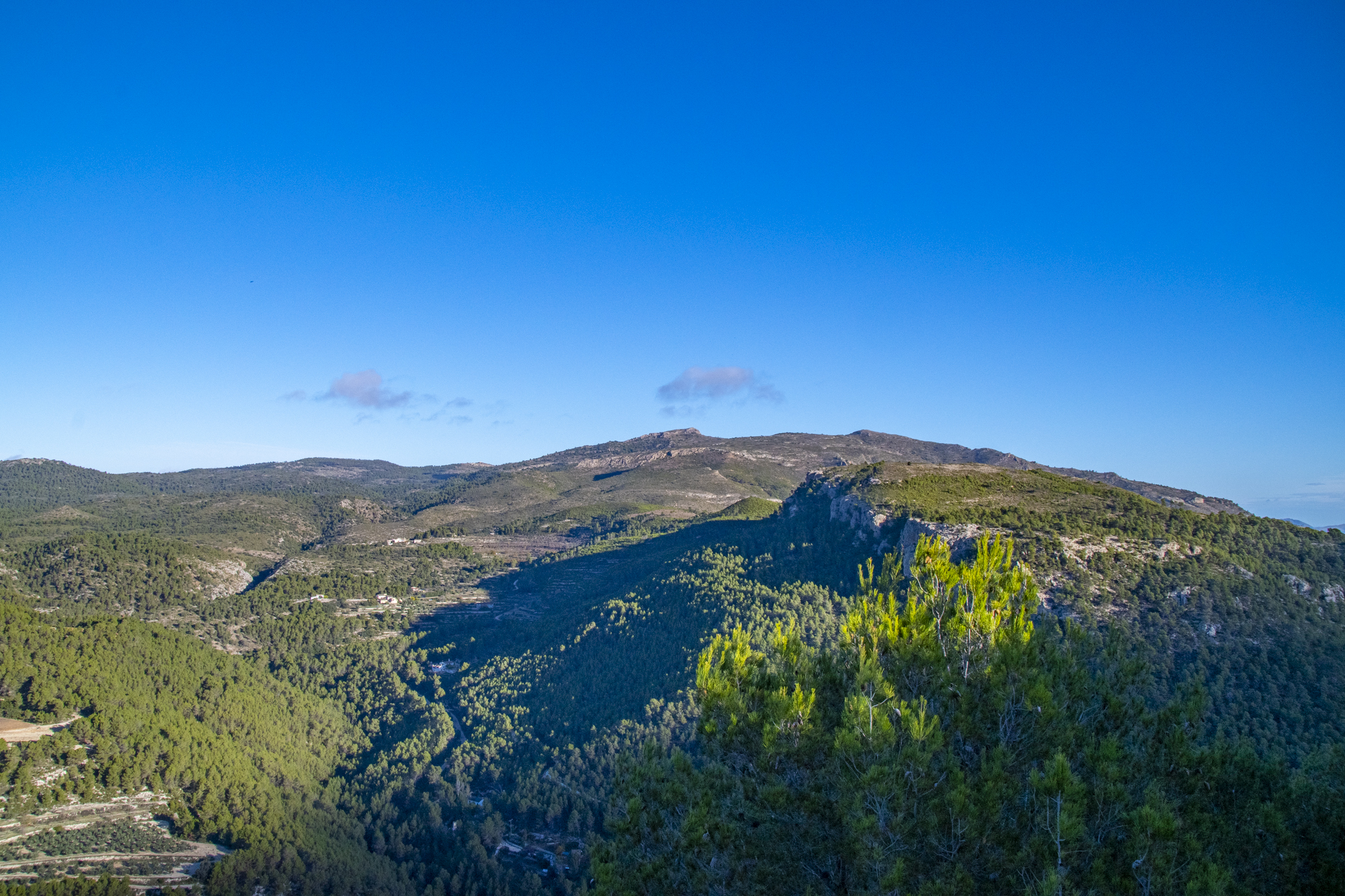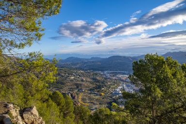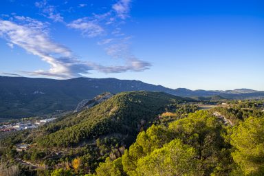 Desde aquí nos dirigimos en constante ascenso a la cima donde se encuentra la gran cruz de hierro y la pequeña ermita de San Cristòfol, en una situación muy privilegiada.