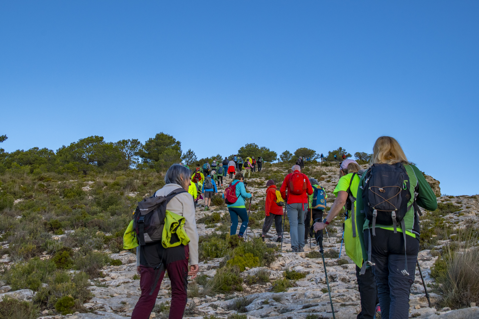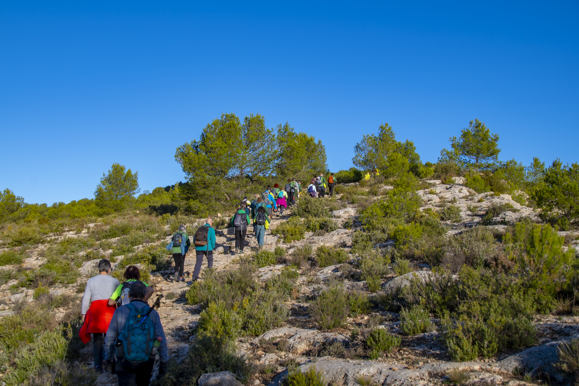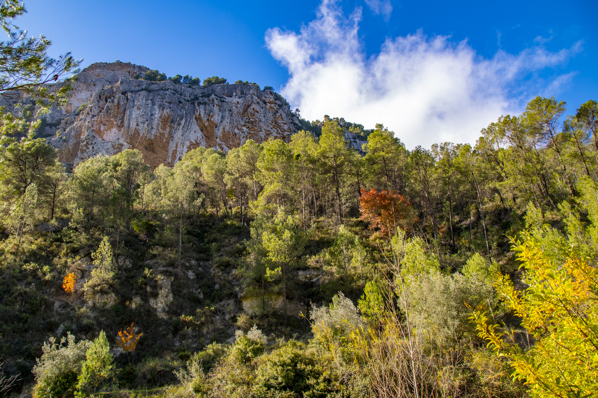 La zona denominada Les Pedreres ha sido la siguiente en alcanzar, con una altitud en su cima de 1058 msnm. Pasos de piedra caliza, zonas escalonadas, senderos cubiertos de arbolado y demás nos han adentrado en el Barranc del Cinc, donde hemos podido apreciar varias fuentes a lo largo de su recorrido: Font de la Teula, Font del Pastoret (o del Sabater) entre otras.